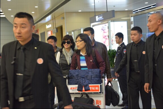 10月11日晚18点20分,我公司委派四名贴身护卫跟随甲方工作人员一同前往鄂尔多斯市飞机场,迎接影星赵雅芝的到来,18点40分影星赵雅芝从机场出口走出,四名贴身护卫人员立即上前以四方队形展开护卫,一直护送赵雅芝女士顺利到达驻地。